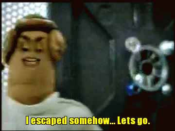 This line is bad on several levels, as it’s spoken in a mundane manner, the characters don’t reasonably react with dread or horror at the development, and no description, exposition, or world building is given to explain it at all. “Somehow” does the heavy lifting in brushing aside all those pesky details. Of course, just about any explanation would be difficult for the audience to suspend their disbelief for (namely because the original trilogy (and prequels) already concluded Luke, Anakin/Vader, and Palpatine’s arcs). It’s ironic, as there is a parody film Thumb Wars that has such a line spoken by Princess Bunhead (the parody version of Princess Leia) after being captured by Black Helmet Man (the parody version of Darth Vader) that directly mocks breezy dialogue: